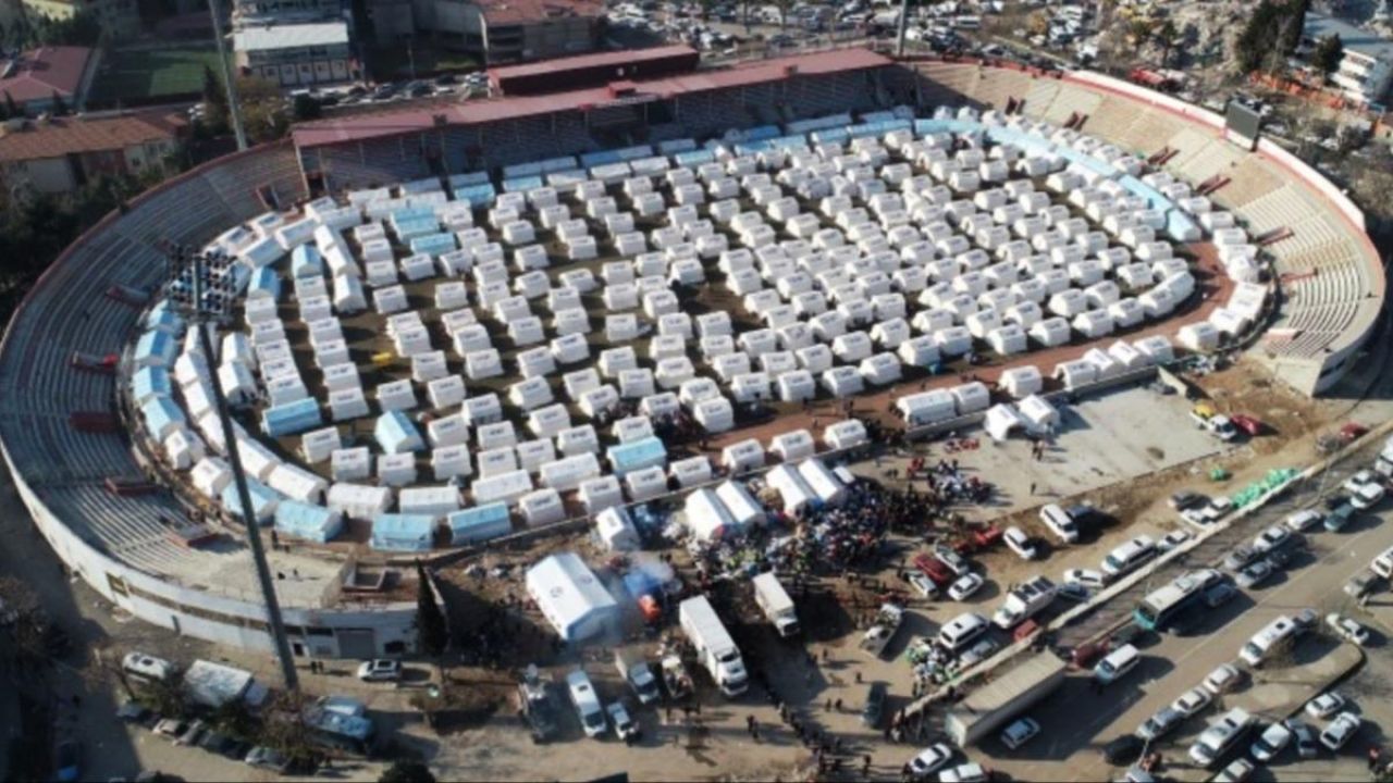 "Asrın felaketi" olarak nitelenen depremlerden etkilenen Kahramanmaraşlı depremzedeler için Şazibey Mahallesi'ndeki 12 Şubat Stadı'nda kurulan çadır kentte, afetzedelerin tüm ihtiyaçları karşılanıyor.