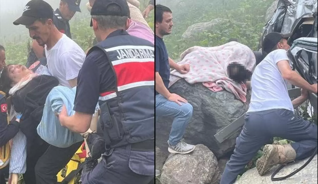 Yoldan geçen turistlerin ve yayla sakinlerinin 112 Acil hattına yaptığı ihbar üzerine bölgeye jandarma ve sağlık ekipleri sevk edilirken, araçta sıkışan yaralılar uzun uğraşlar sonrasında araçtan çıkartıldı.