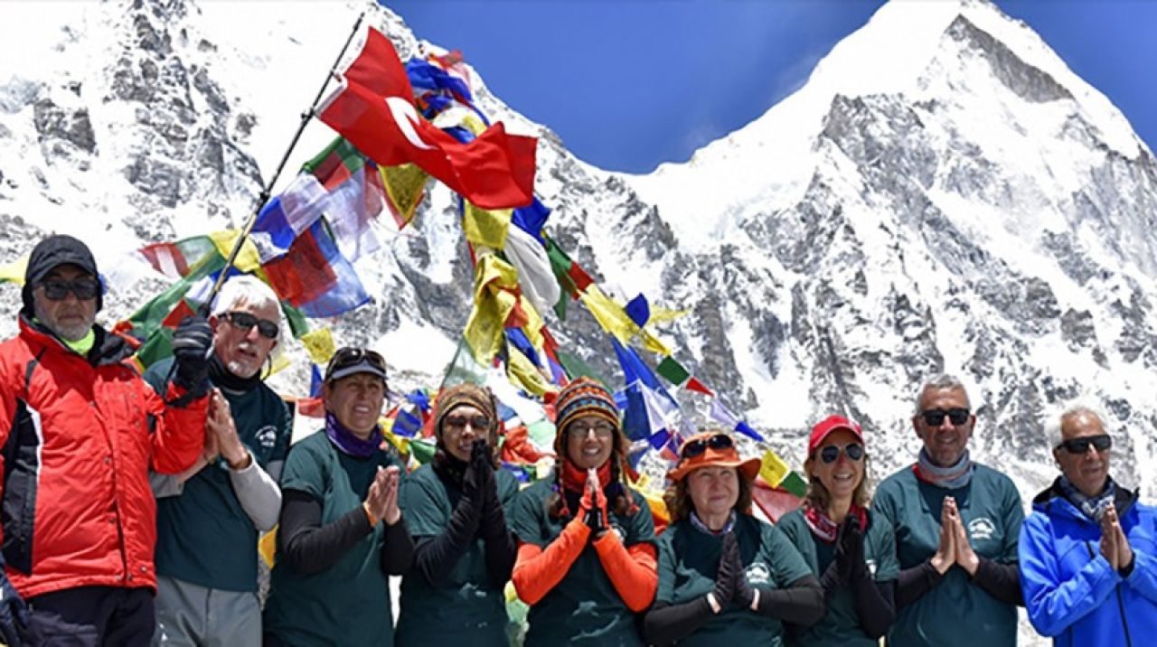 Sonunda 148 kilometre yürüyerek 5 bin 364 metre yüksekliğe çıkarak Everest dağında Türk bayrağımızı gururla dalgalandırmanın mutluluğunu yaşadık” diye konuştu.