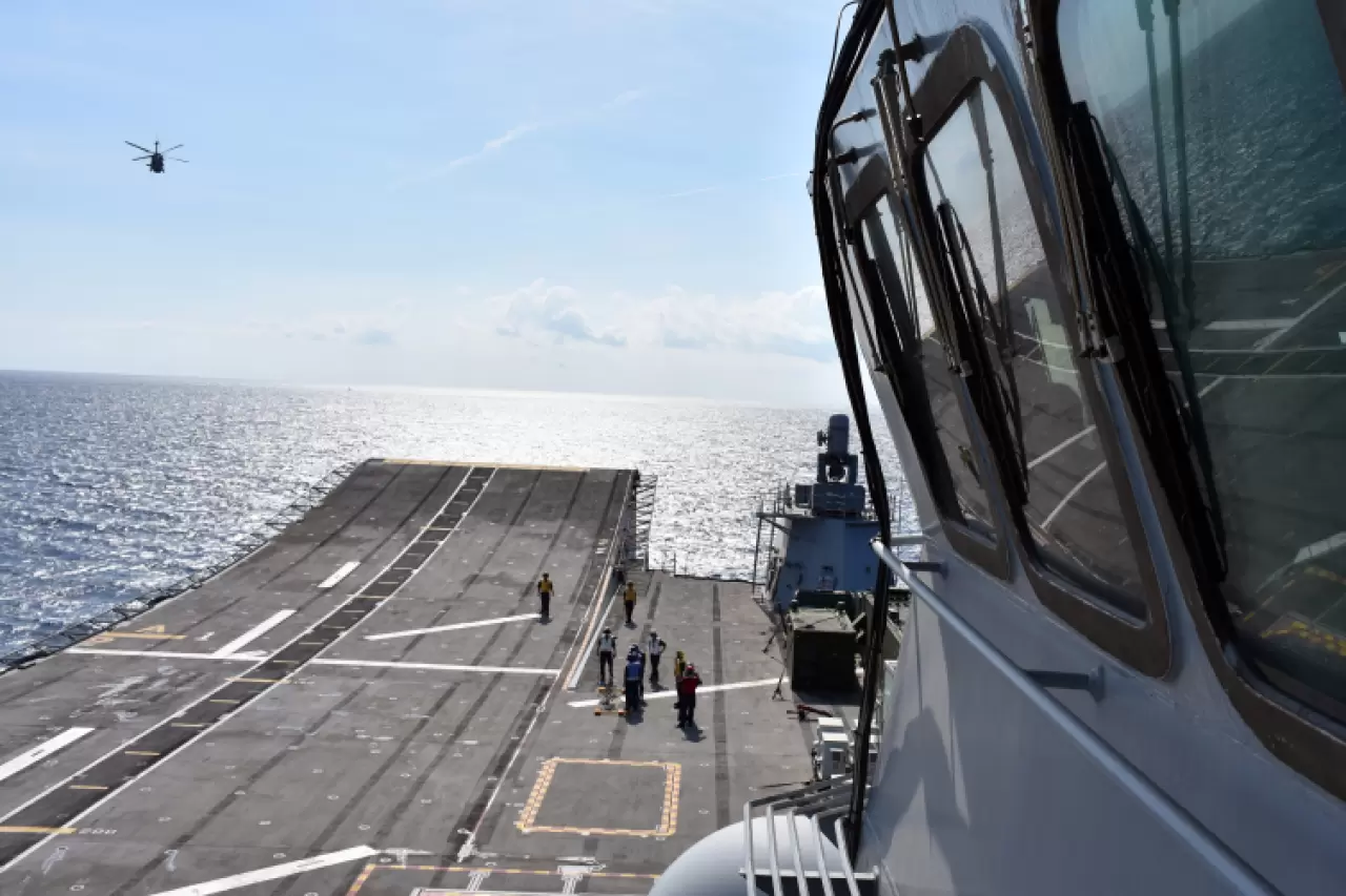 Tatbikatın basın günü etkinliği çerçevesinde bir grup basın mensubu, TCG Anadolu gemisinde ağırlandı.