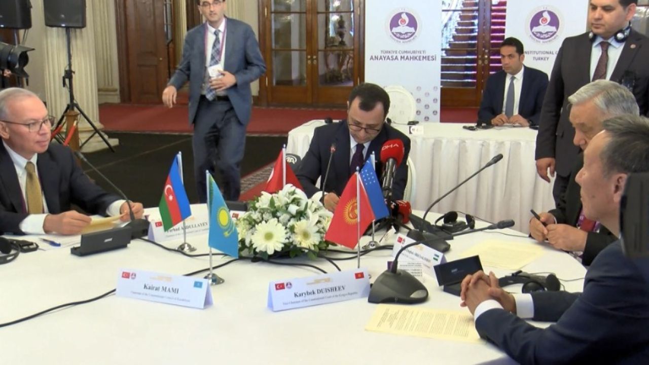 Türk Anayasa Yargısı Konferansı 'Türk-Ay' imza töreni Dolmabahçe Sarayı'nda düzenlendi. Düzenlenen imza töreninde Türk Devletleri Teşkilatı Üye ülkelerinden Anayasa Mahkemesi Başkanı Zühtü Arslan, Azerbaycan Anayasa Mahkemesi Başkanı Farhad Abdullayev, Kırgızistan Anayasa Mahkemesi Başkanvekili Karybek Duisheev, Özbekistan Anayasa Mahkemesi Başkanı Mirza Ulugbek Abdusalomov hazır bulundu. Toplantıya Kazakistan Anayasa Konseyi Başkanı Kairat Mami de çevrimiçi olarak katıldı.