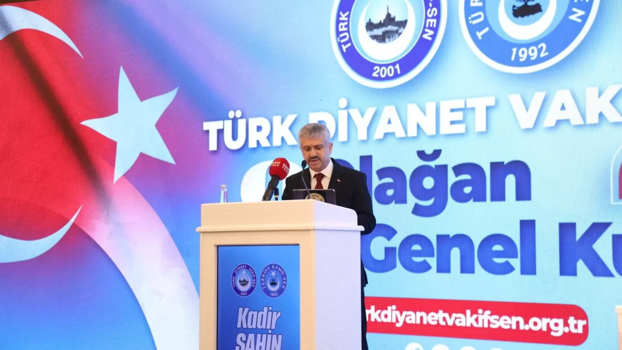 Şahin konuşmasında, “Görev süresi sona eren Genel Başkanımız Sayın Nuri Ünal’a ve yönetim kurulu üyelerine, Türk Diyanet Vakıf-Sen camiasına sundukları değerli hizmetlerden dolayı teşekkürlerimi sunuyor; görevi devralan yeni yönetimimize Yüce Rabbimden hayırlı ve bereketli çalışmalar diliyorum.” ifadelerini kullandı.