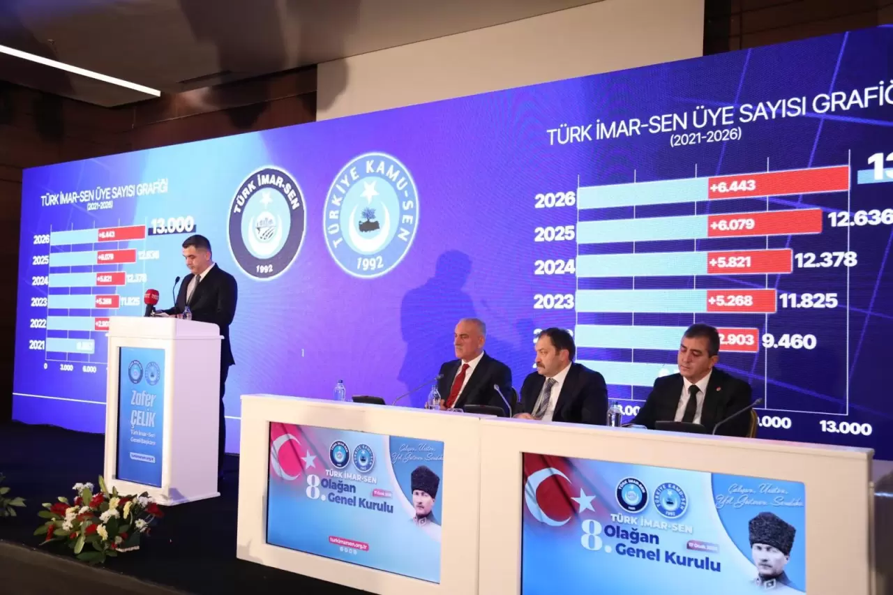Göreve geldikleri günden bu yana güçlü iletişim ve yakın temasla çalıştıklarını aktaran Çelik, sendikanın üye sayısının 2021’de 6.557’den 2026 başı itibarıyla 13 bin seviyesine ulaştığını açıkladı. Yeni dönemde hedeflerinin Türk İmar-Sen’i genel yetkili sendika konumuna taşımak olduğunu söyledi.