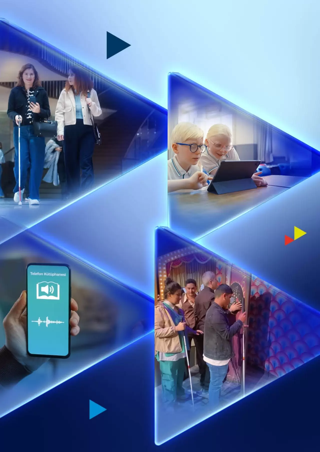 Türk Telekom, “Telefon Kütüphanesi” projesiyle görme engelli bireylere 50’den fazla kategoride binlerce sesli kitap, betimlemeli tablolar ve güncel haberlere ücretsiz erişim sağlarken, para tanıma ve ilaç barkodu okuma özellikleriyle kullanıcıların gündelik yaşamlarında bilgiye erişimini kolaylaştırıyor, “Kitaplara Ses” uygulaması ile gönüllülerin kolayca kitap seslendirip görme engellilerin daha fazla sesli kitaba erişebilmesine olanak sağlamaya devam ediyor. “EyeSense” uygulaması, görme engellilerin fotoğraf çekme ve nesne–renk tanıma deneyimini kolaylaştırırken, “Erişilebilir Yaşam” uygulaması metin seslendirmeden para tanımaya, panik butonundan alt yazı eklemeye kadar birçok farklı ihtiyaca tek çatı altında çözüm sunuyor.