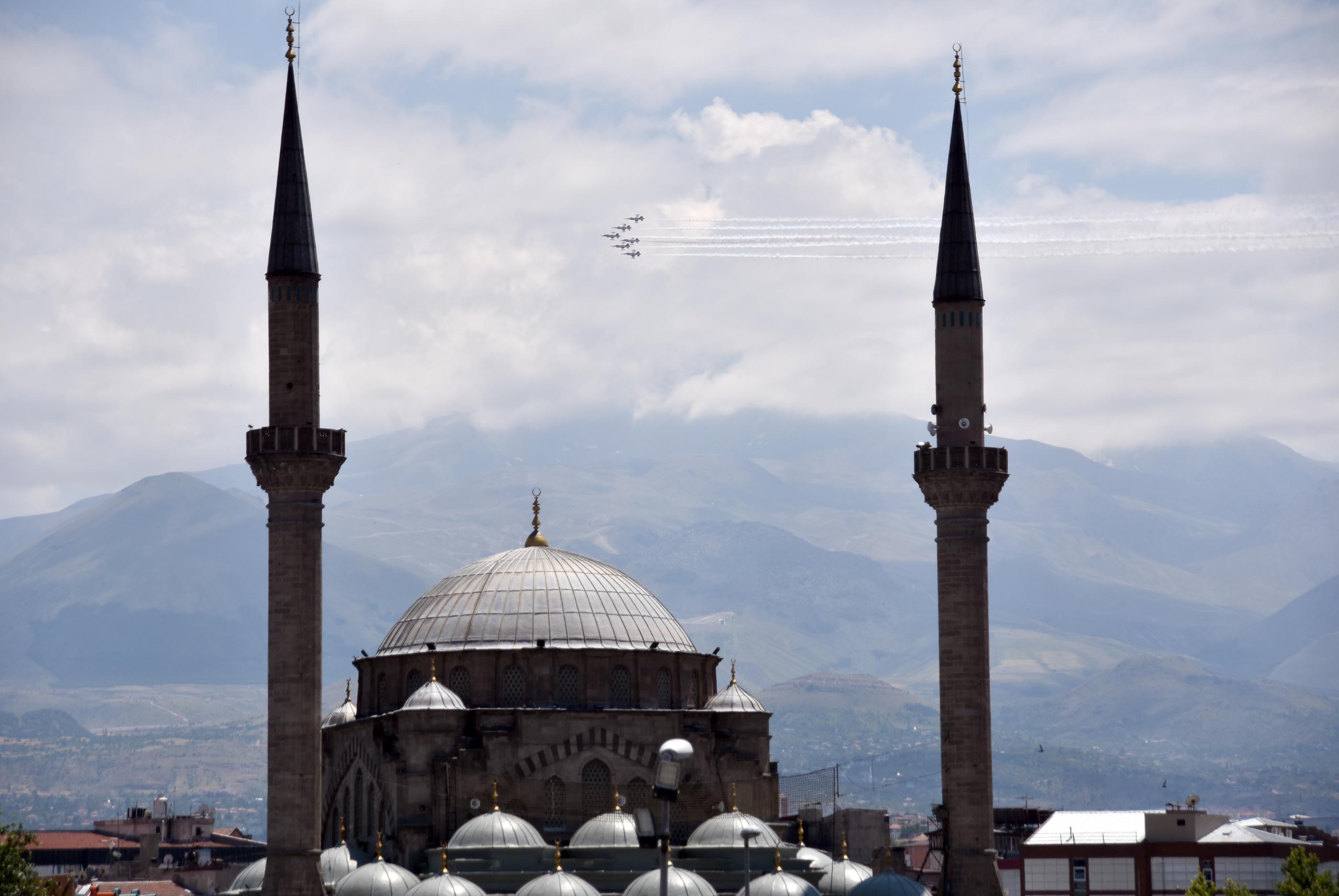 Türk Hava Kuvvetleri Akrobasi Timi 'Türk Yıldızları' Kayseri semalarında gösteri uçuşu yaptı.
