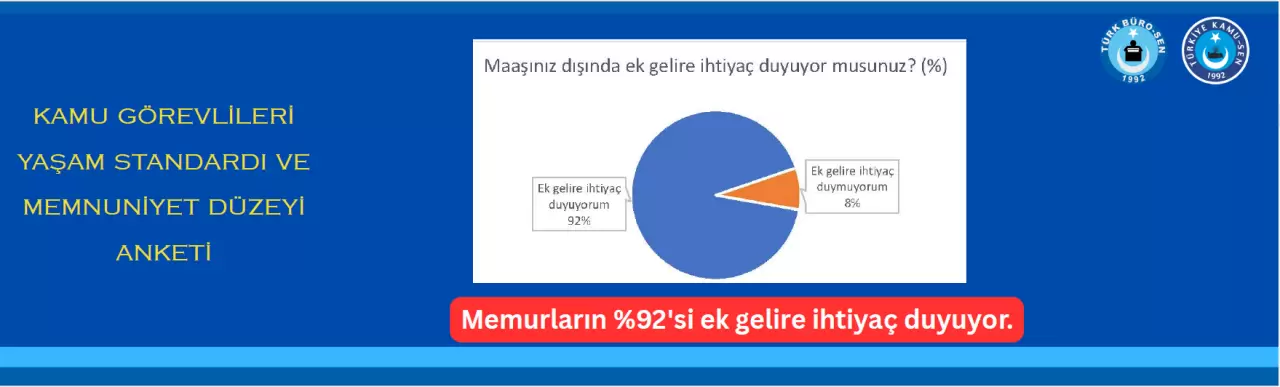 Verimize göre; Memurlarımızın %92'si ek gelire ihtiyaç duyuyor. Büyükşehir ve sahil bandındaki illerimiz artan kira ve emtia fiyatları nedeniyle mahrumiyet bölgesi haline dönüşmüştür.