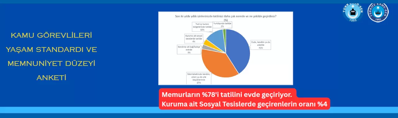 Ve diğer verimize göre; Memurların %78'i tatilini evde geçiriyor ya da köye ailesinin yanına gidiyor. Kuruma ait Sosyal Tesislerde geçirenlerin oranı %4!!