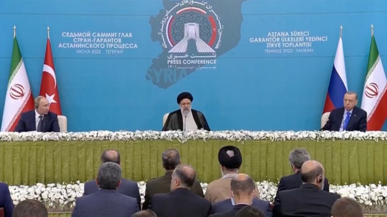 Türkiye, İran ve Rusya arasında Tahran Uluslararası Konferans Salonu'nda düzenlenen "Astana Formatında Yedinci Üçlü Zirve Toplantısı"nın ardından Türkiye Cumhurbaşkanı Erdoğan, İran Cumhurbaşkanı Reisi ve Rusya Devlet Başkanı Putin'in ortak açıklaması yayımlandı.
