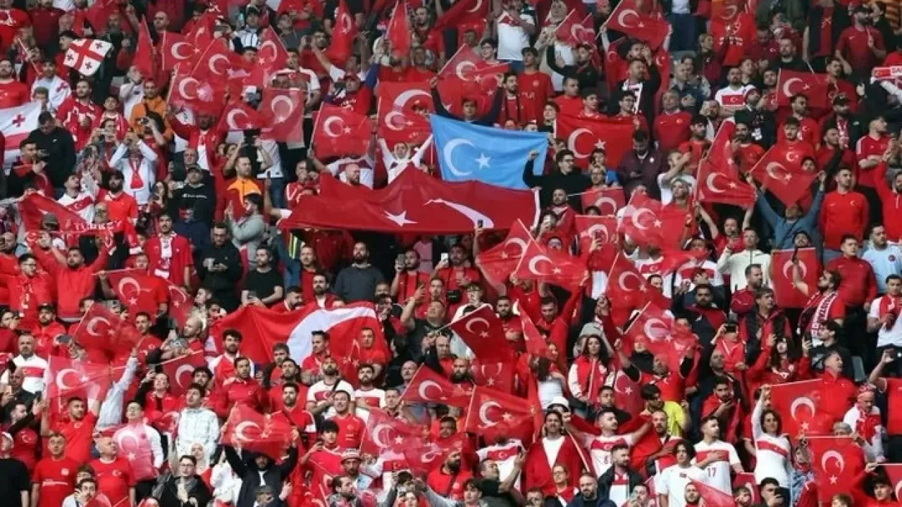 Millilerin galibiyetini kutlayan Türk taraftarlar, Çin'in Doğu Türkistan'da gerçekleştirdiği soykırıma dikkat çekmek amacıyla tribünde Doğu Türkistan Bayrağı açtı. Ay yıldızlı Türk bayrakları arasında açılan Doğu Türkistan bayrağı görenleri gururlandırdı.
