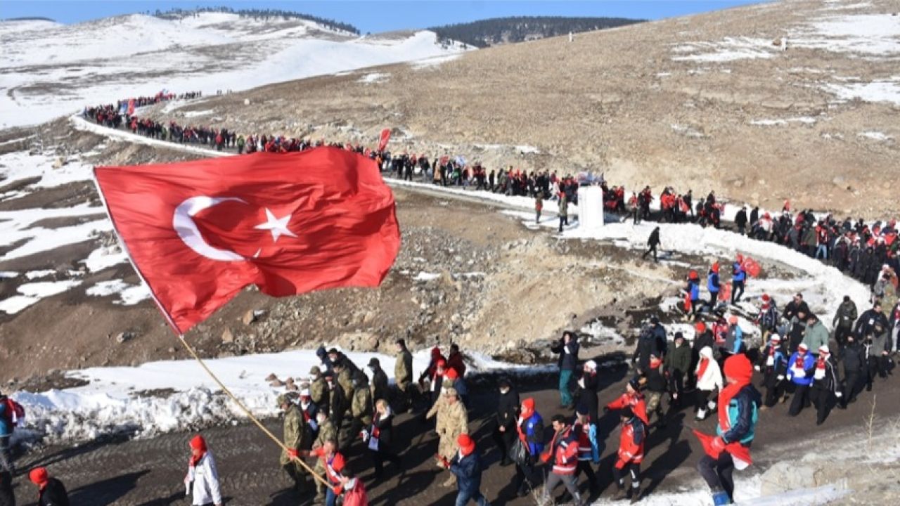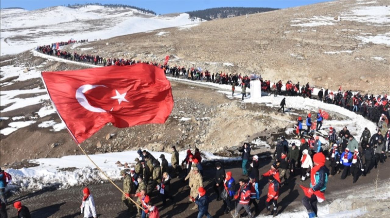 Kars'ın Sarıkamış ilçesinde, Sarıkamış Harekatı'nın 107. yılı anma etkinlikleri çerçevesinde düzenlenen yürüyüş sona erdi.