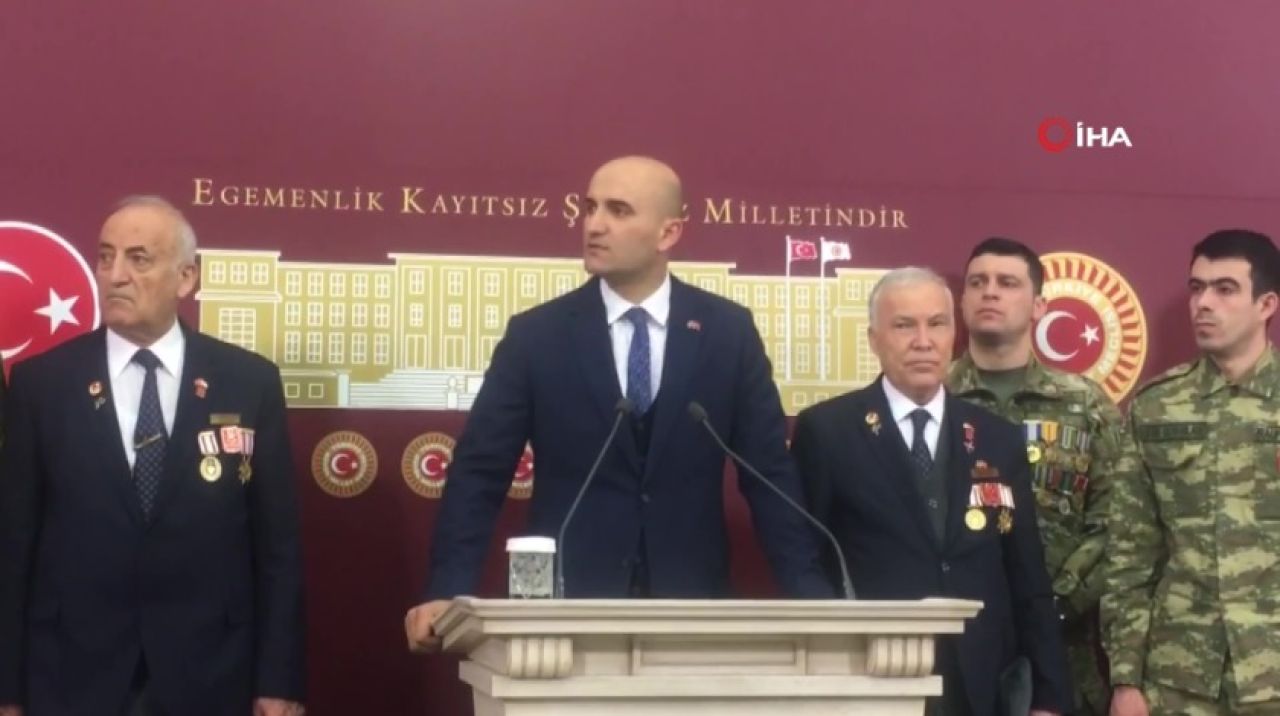 MHP Mersin Milletvekili Olcay Kılavuz, gazilerle Meclis'te düzenlediği basın toplantısında, Karabağ'ın destansı bir mücadeleyle vatana kavuştuğunu ifade etti.