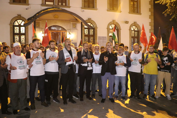 Filistin'e destek için toplananların bir diğer adresi ise İzmir'di. Kalabalık grup, Filistin’in kurtuluşu için okunan duanın ardından dağıldı.