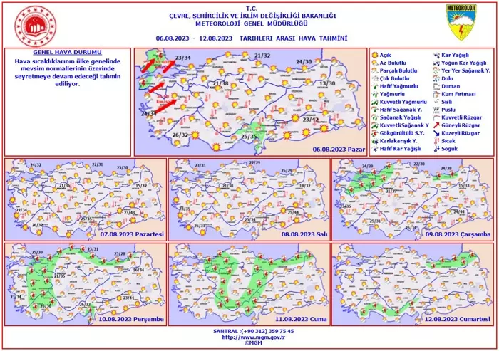 Meteoroloji, 6 Ağustos hava durumu raporunu yayınladı. Rapora göre; hava sıcaklığı Ege ve Akdeniz kıyıları ile Güneydoğu Anadolu'da mevsim normallerinin 2 ila 4 derece, diğer bölgelerde ise 4 ila 8 derece üzerinde seyretmeye devam edecek. Uzmanlar ise güneş çarpmasına karşı vatandaşları uyararak, özellikle saat 11.00-16.00 arasında dışarı çıkılmaması gerektiğini belirtiyor. İşte il il güncel hava durumu raporu...