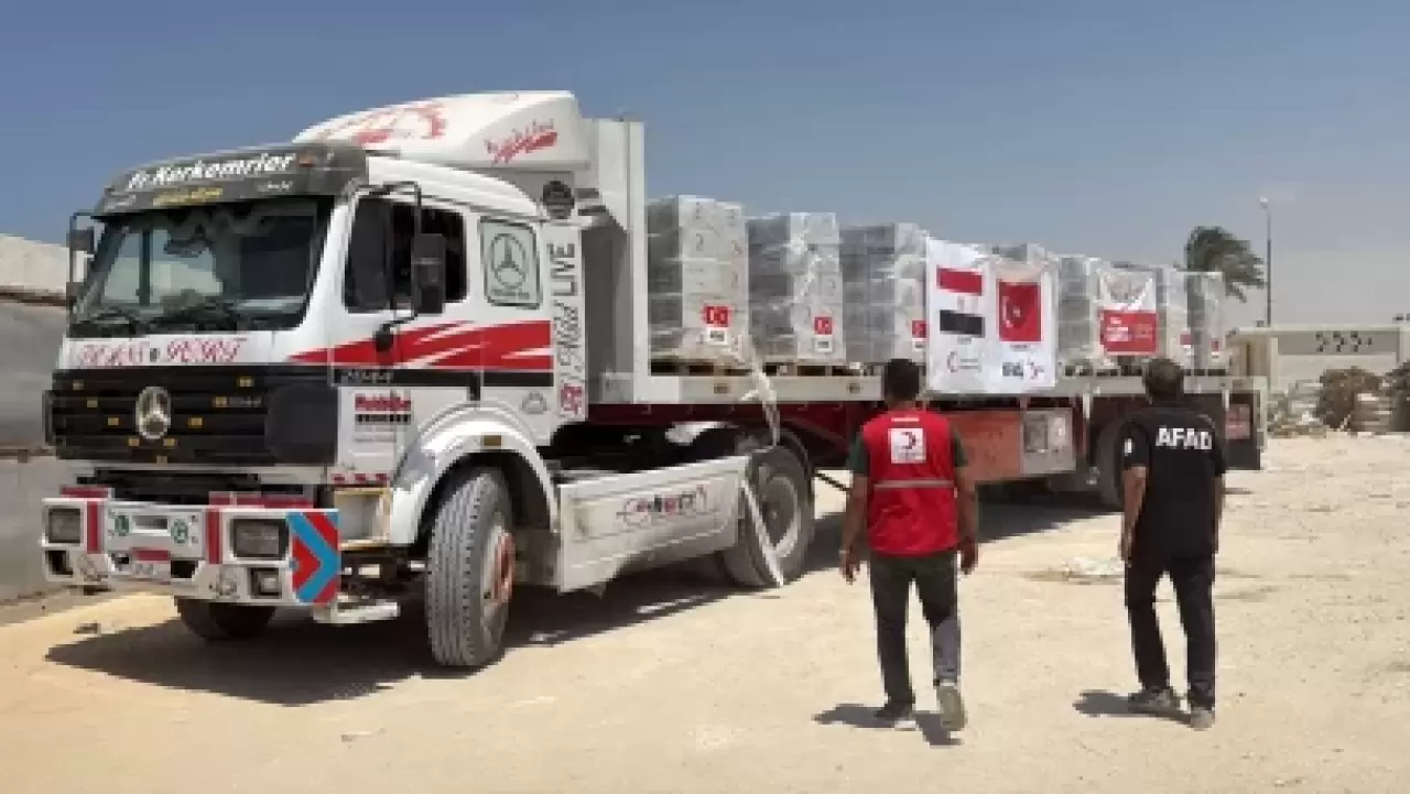 AFAD koordinasyonunda hazırlanan ve 17 sivil toplum kuruluşunun destek verdiği gemideki yaklaşık 900 tonluk yardım malzemesinin yarısından fazlası, 25 tıra yüklenerek Gazze’ye doğru hareket etti. Tırlar, limandan AFAD yetkilileri tarafından uğurlandı.