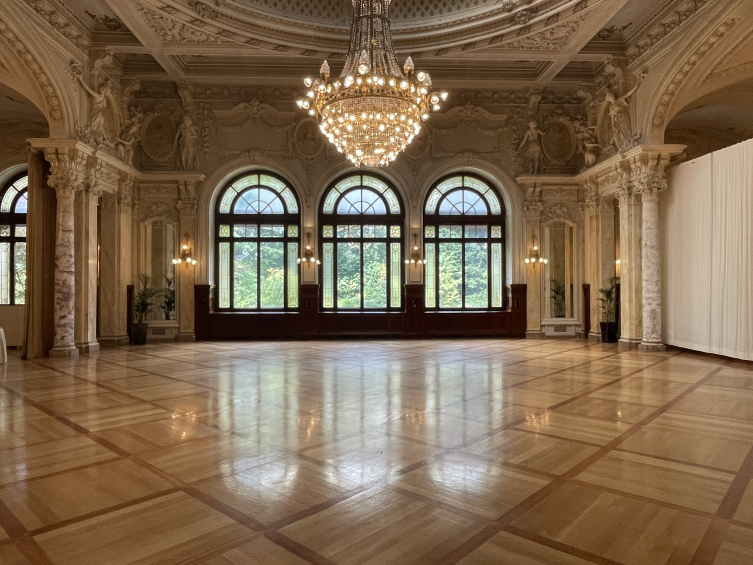 Salonun duvarlarında freskler, tavanında cam vitraylar, orta bölümünde ise büyük bir avize yer alıyor. Baş köşedeki bölümde devasa ayna ile orta bölümünde büyük pencereler bulunuyor. Tarihi yapısı muhafaza edilen salonda, zaman zaman bazı toplantı ve etkinlikler gerçekleştiriliyor.