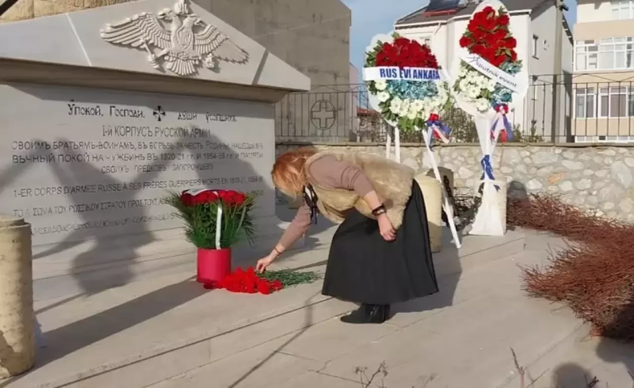 Gazi Süleyman Paşa Mahallesi'nde aslına sadık kalınarak 2008'de yeniden inşa edilen Rus Anıtı'ndaki tören, Türk ve Rus heyetlerin anıta karanfil bırakmasıyla başladı. Daha sonra Rus heyet, ayin gerçekleştirdi.