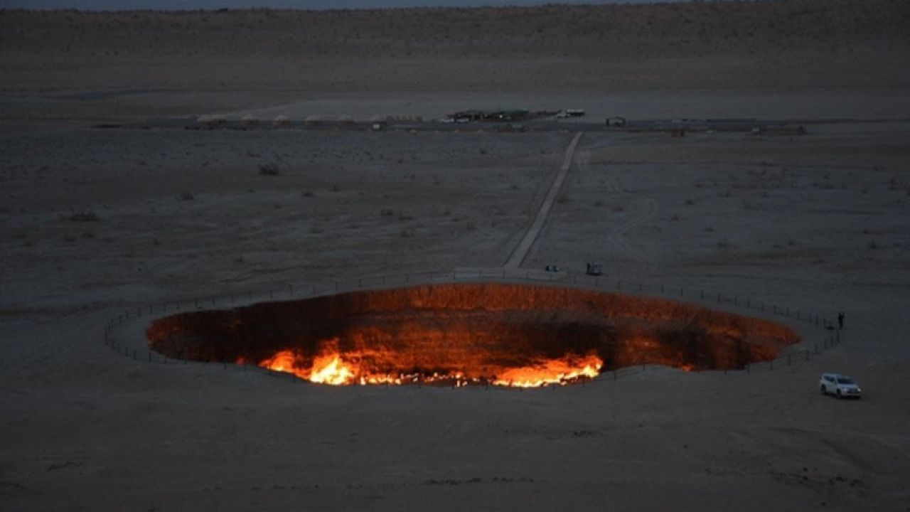 60 metre genişliğe ve 20 metre derinliğe sahip krater, içinden çıkan doğal gaz nedeniyle yaklaşık 50 yıldır yanmaya devam ediyor.