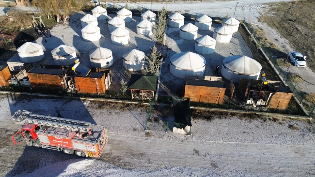 Aksaray’ın Eskil ilçesinde kıl çadırlardan yapılan ve yabancı turistlerin konakladığı butik otelin banyo ve tuvaletinde yangın çıktı. Yangında yaralanan olmazken, alevler kısa sürede kontrol altına alındı.