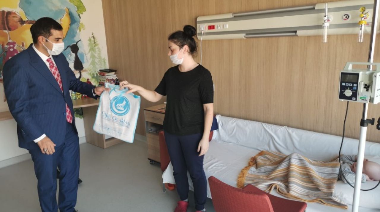 Lösemili çocukların tedavi gördüğü Ankara Şehir Hastanesi'ne ziyarette bulunan Ülkü Ocakları Genel Başkanı Sinan Ateş, hastanede tedavi gören lösemili çocuklara çeşitli hediyeler verdi.