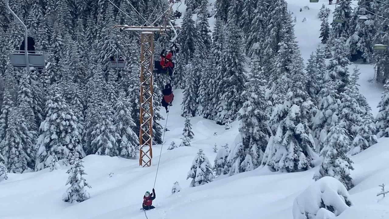 Uludağ’daki Oteller Bölgesi’nde telesiyejde meydana gelen arıza paniğe neden oldu. Yaklaşık 50 kişiyi taşıyan telesiyej, henüz belirlenemeyen bir sebeple durarak havada kaldı.