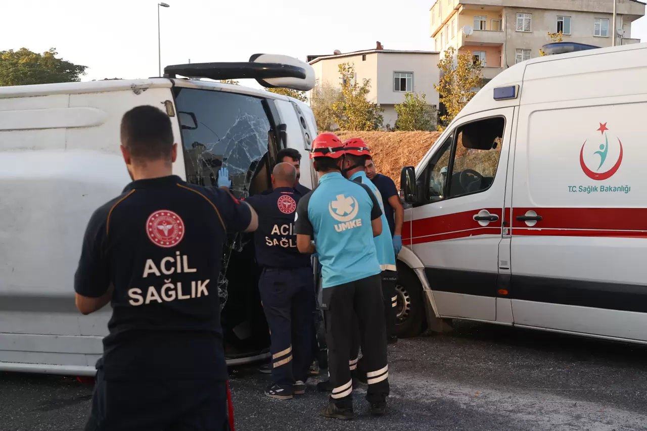 Kazada, servis aracındaki 8 kişi yaralandı.