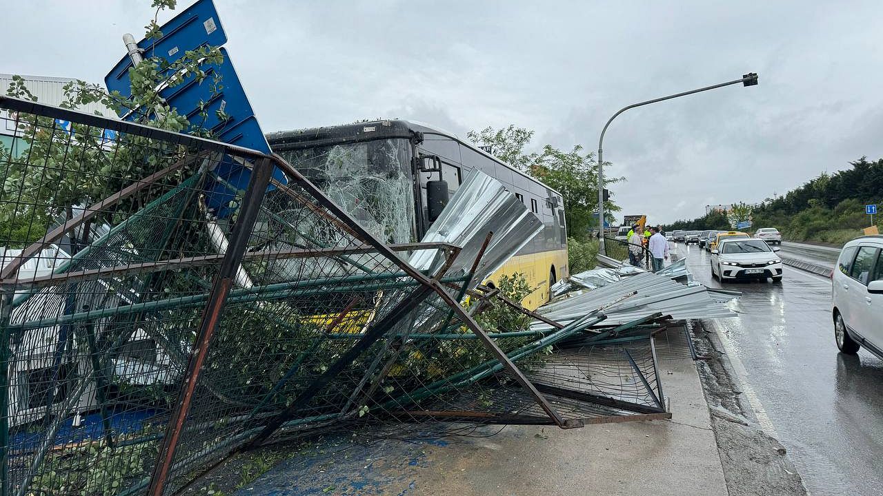 Hoca Nasrettin Caddesi’nde 34 HO 2881 plakalı İETT otobüsü, önce ıslak yolda kaldırıma çıktı, ardından bir iş yerinin bahçe duvarına çarparak durabildi.