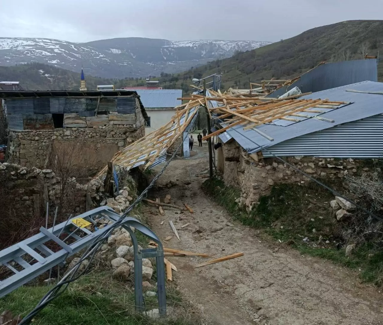 Erzincan’ın Refahiye ilçesine bağlı Şahaloğlu köyünde saatte 90 kilometreye ulaşan fırtına nedeniyle evlerin çatıları uçtu, enerji nakil hatları zarar gördü. Köyde büyük panik yaşanırken, vatandaşlar kendilerini kapalı alanlara zor attı. Fırtınanın ardından elektrik kesintileri yaşanırken, devrilen ağaçlar yolları kapattı.