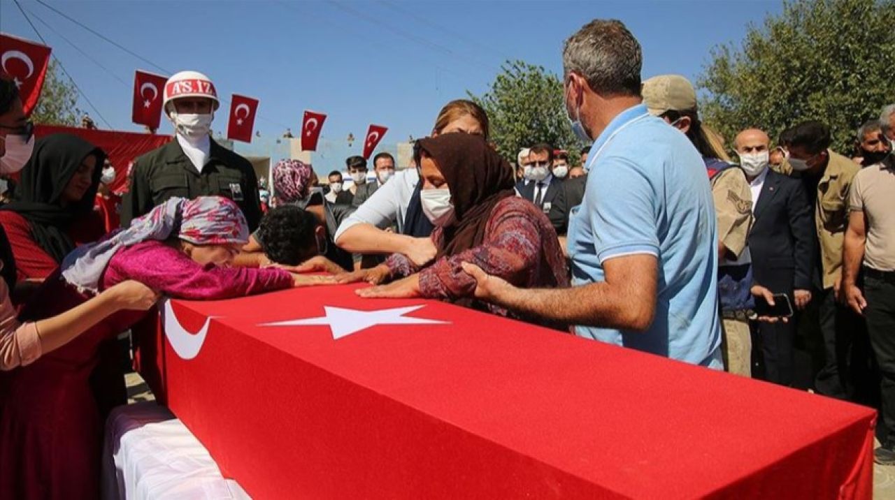 Irak'ın kuzeyindeki Pençe-Kaplan Operasyonu bölgesinde teröristlerce tuzaklanan mühimmatın patlaması sonucu şehit olan Piyade Uzman Çavuş Serdar Temelli'nin (23) Türk bayrağına sarılı tabutu, Hakkari'de düzenlenen törenin ardından helikopterle Derik ilçesi Kırsal Bozbayır Mahallesi'ne getirildi.