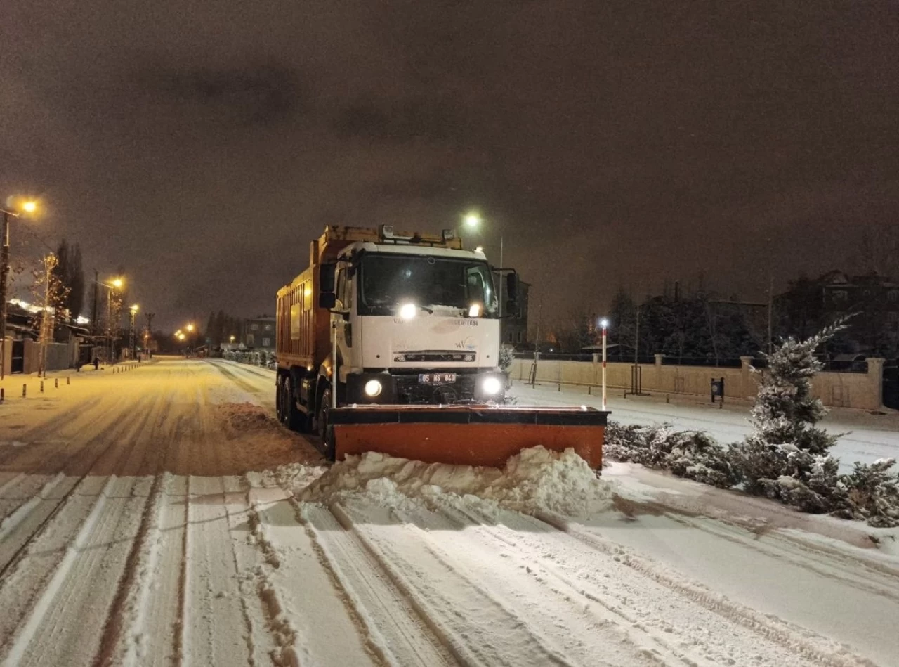 Büyükşehir Belediyesi'ne bağlı karla mücadele ekipleri, kapanan yerleşim yeri yollarını açmak için çalışma başlattı.