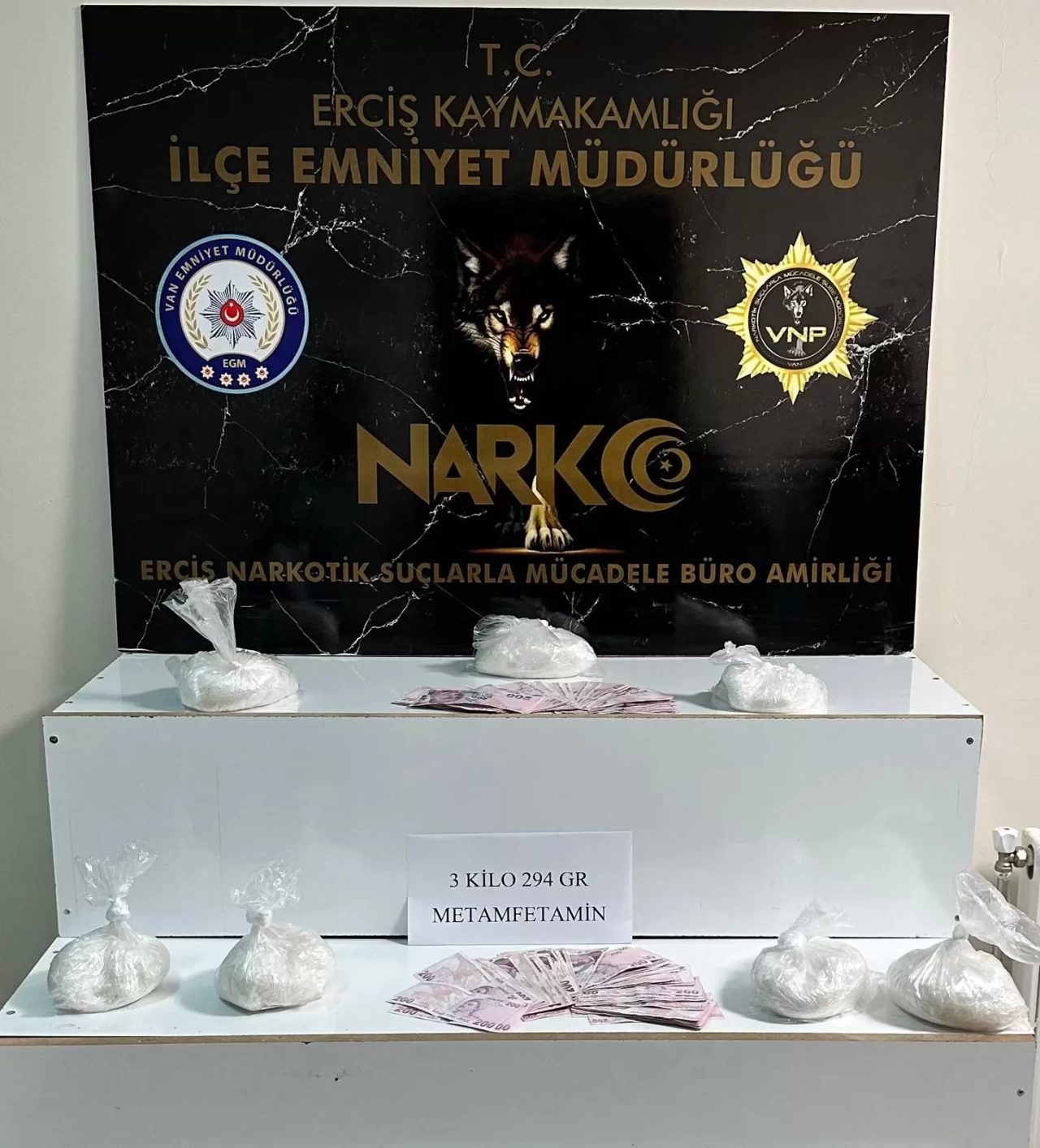 Van'ın Erciş ilçesinde düzenlenen operasyonda 3 kilo 294 gram sentetik uyuşturucu ele geçirildi.