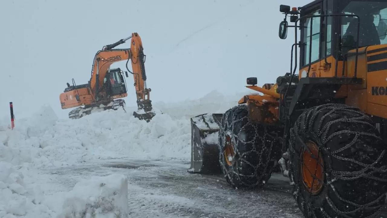 Kış mevsiminin sert geçtiği bölgede ekipler, ara verdikleri yol açma çalışmalarına bugün de yoğun kar yağışı altında büyük bir titizlikle devam ediyor.