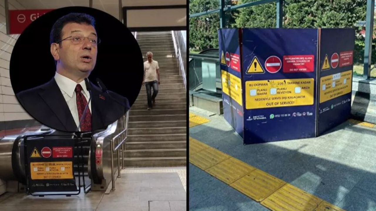 Başta engelli, yaşlı ve hamile vatandaşları zor durumda bırakan yürüyen merdiven arızalarına bir yenisi daha eklendi. Yürüyen merdivenlerin bozuk olduğu, M4 Kadıköy-Sabiha Gökçen Havalimanı metro hattının Göztepe durağında vatandaşlar yürümek zorunda kaldığı. Sosyal medyadan da çeşitli noktalardaki arızalı asansör ve merdivenleri paylaşan vatandaşlar İmamoğlu'na, 'Bu da mı sabotaj?' diyerek tepki gösterdi.