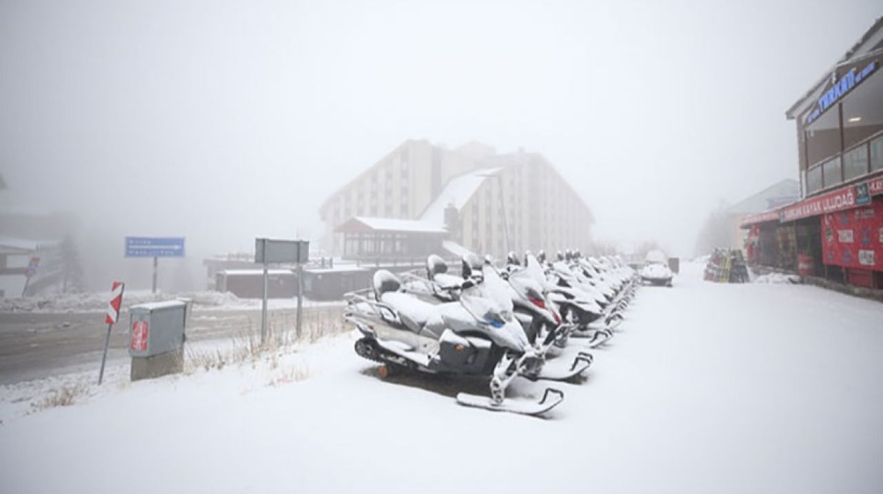 Bursa'da, 2 bin 543 rakımlı Uludağ'a mevsimin ilk karı yağdı. Dün gece yarısı başlayan kar yağışı, yoğun sis ve fırtınayla birlikte sabah saatlerine kadar etkisini sürdürdü. Görüş mesafesi, 5 metrenin altına düştü. Kar yağışı birinci ve ikinci oteller bölgesinde de etkili oldu. Yağışla birlikte kayak merkezinin zirvesi ve kayak pistleri beyaza büründü.