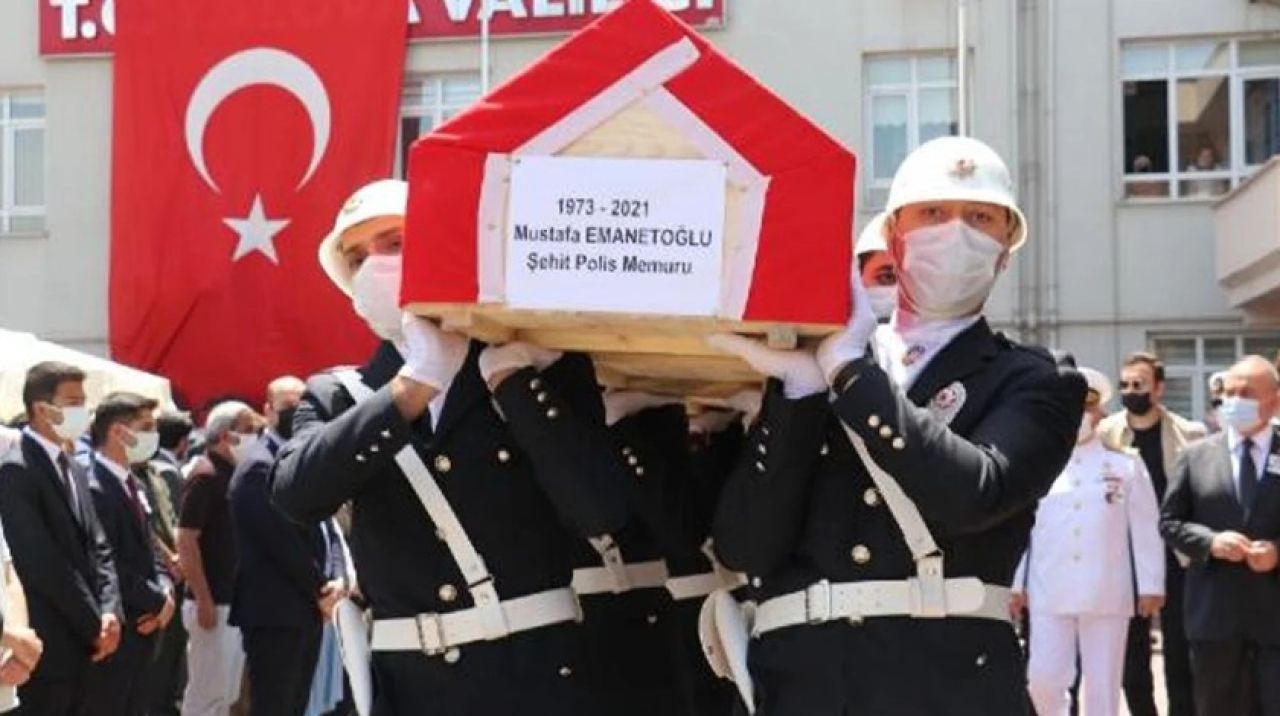 Törende konuşan İl Emniyet Müdürü Ahmet Hakan Fındık, “Mustafa Emanetoğlu görevini gerçekleştirdiği sırada kahramanca şehit olmuştur. Bugün vatanı için görev yaparken hayatını kaybeden aziz şehidimize son görevimizi yapmak için buradayız. Bu vesileyle başta aziz şehidimiz Mustafa Emanetoğlu olmak üzere, vatanımızın bölünmez bütünlüğü, milletin huzur ve güvenliği için görev yaparken hayatını kaybeden tüm şehitlerimize Allah’tan rahmet, kederli aileleri ve teşkilatımıza başsağlığı ve sabırlar diliyorum” dedi.