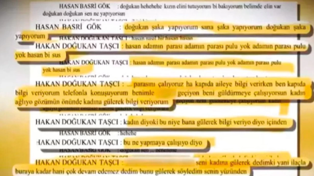 Hakan Doğukan Taşçı: Parasını çalıyoruz. Kapıda aileye bilgi verirken telefonla konuşuyorum. Benimle dalga geçiyorsun beni güldürmeye çalışıyorsun. Kadın ağlıyor gözümün önünde. Ben gülerek bilgi veriyorum.