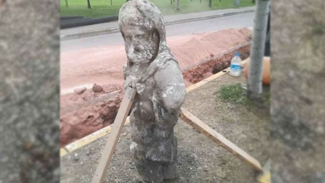 Kocaeli Büyükşehir Belediyesi ekipleri, İzmit sahil şeridinde yapılan kazı çalışması sırasında heykele rastladı.