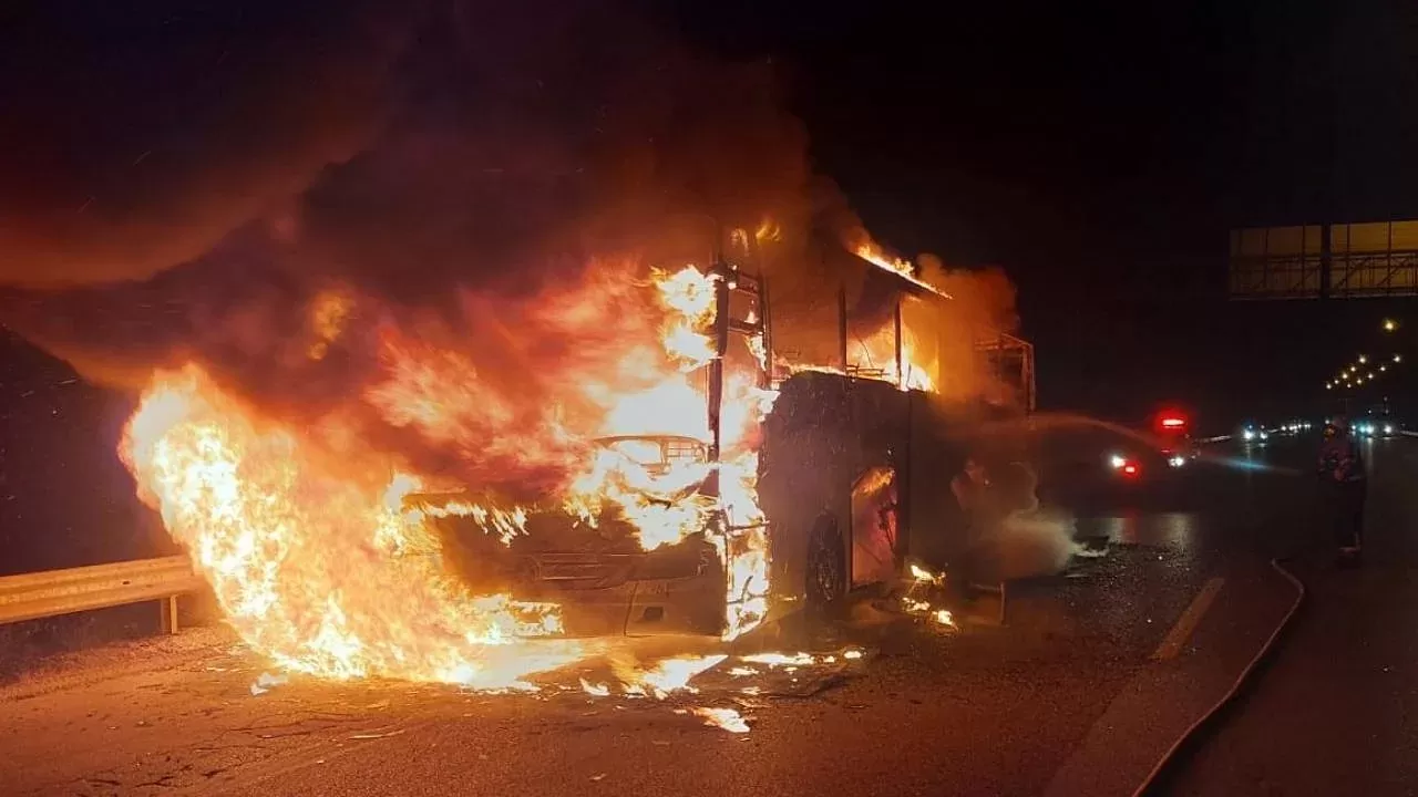 Alevleri fark eden ve büyük şok yaşayan yolcular can havliyle otobüsten indi. 112 Acil Çağrı Merkezi'ne yapılan ihbar üzerine bölgeye itfaiye, polis ve sağlık ekipleri sevk edildi.