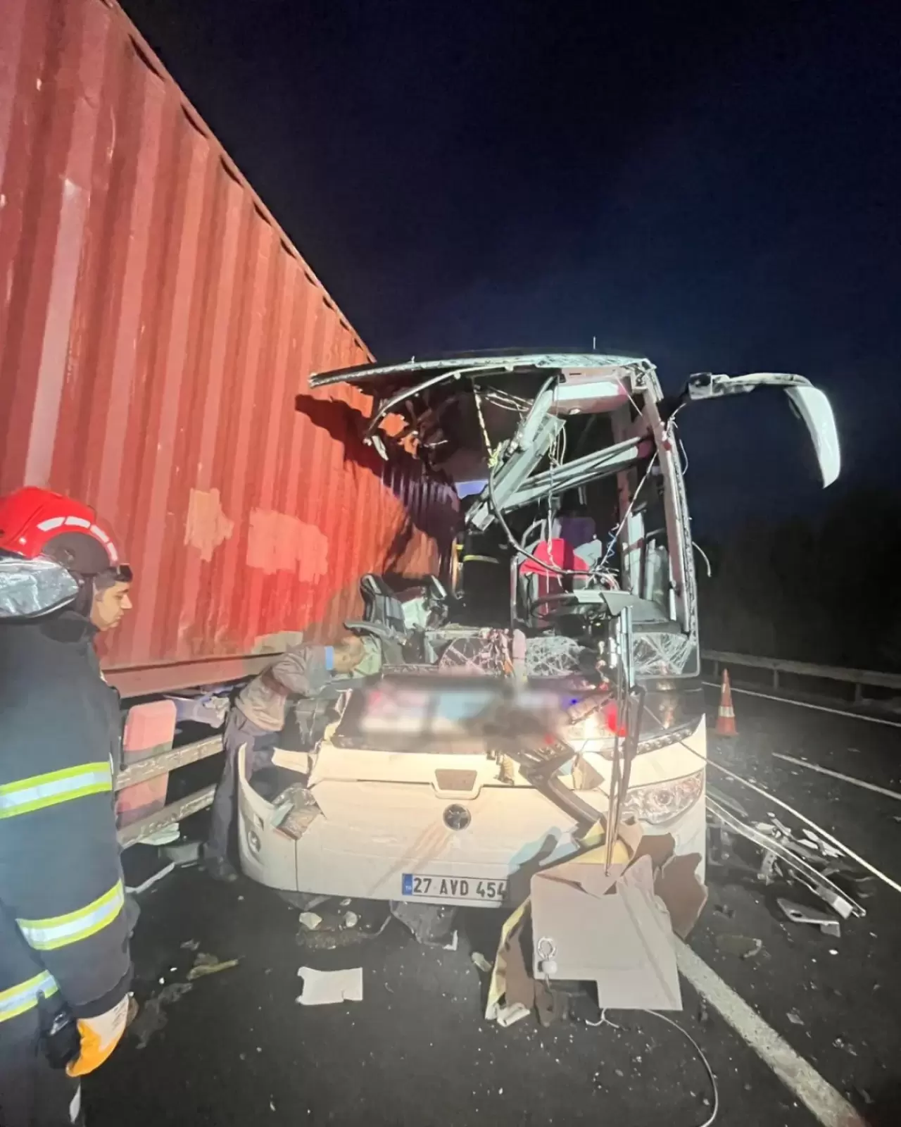 Edinilen bilgiye göre, sürücüsünün henüz belirlenemeyen 27 AVD 454 plakalı yolcu otobüsü, aynı yönde seyreden 06 CSZ 652 plakalı tıra arkadan çarptı. Çarpmanın etkisiyle otobüste büyük hasar oluştu, bazı yolcular araçta sıkıştı.