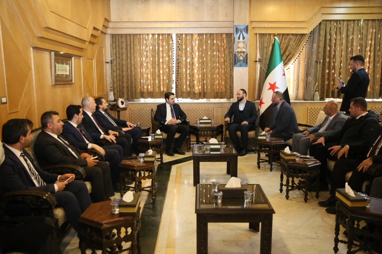 İşbirliği imkanlarını değerlendirmek için geldiklerini belirten Eren, "Bizi kabul ettiğiniz ve bize vakit ayırdığınız için teşekkür ederiz. Öncelikle konuşmamın başında sizleri tebrik etmek istiyorum. 14 senelik mücadelenin sonunda rejime karşı Suriye halkı kazandı. Suriye'nin insanları kazandı. Sizler kazandınız. İki aydır meydana gelen bu süreçten dolayı çok mutluyuz. Sizleri tekrardan tebrik ediyoruz. Biz de sizlere işbirliği önerilerimizi teklif etmek için geldik. Şehit olan, hayatını kaybeden tüm Suriyelilere Allah'tan rahmet diliyorum." dedi.