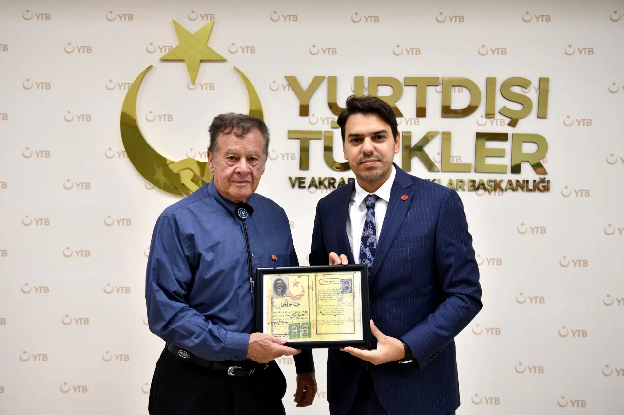 1910’lu yıllarda Elazığ’dan ABD’ye göç eden ilk Türklerden olan Mehmed Ali Bey’in oğlu Robert Turhan Ali-Carr YTB’yi ziyaret ederek başkan Abdullah Eren ile bir araya geldi.