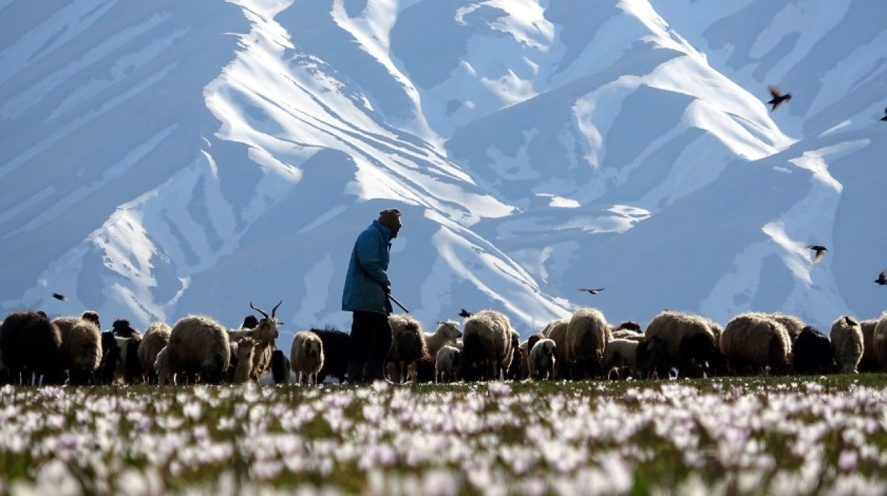 Çiçekler arasındaki çobanın koyun sürüsünü otlatması ise güzel manzara oluşturdu.