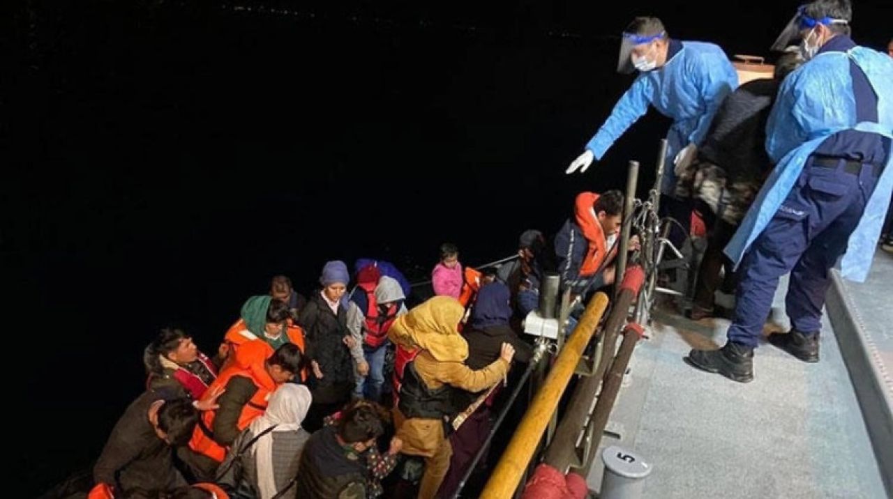 Yunan sahil güvenlik unsurlarınca Türk kara sularına itildiği belirlenen 56 göçmen kurtarıldı.