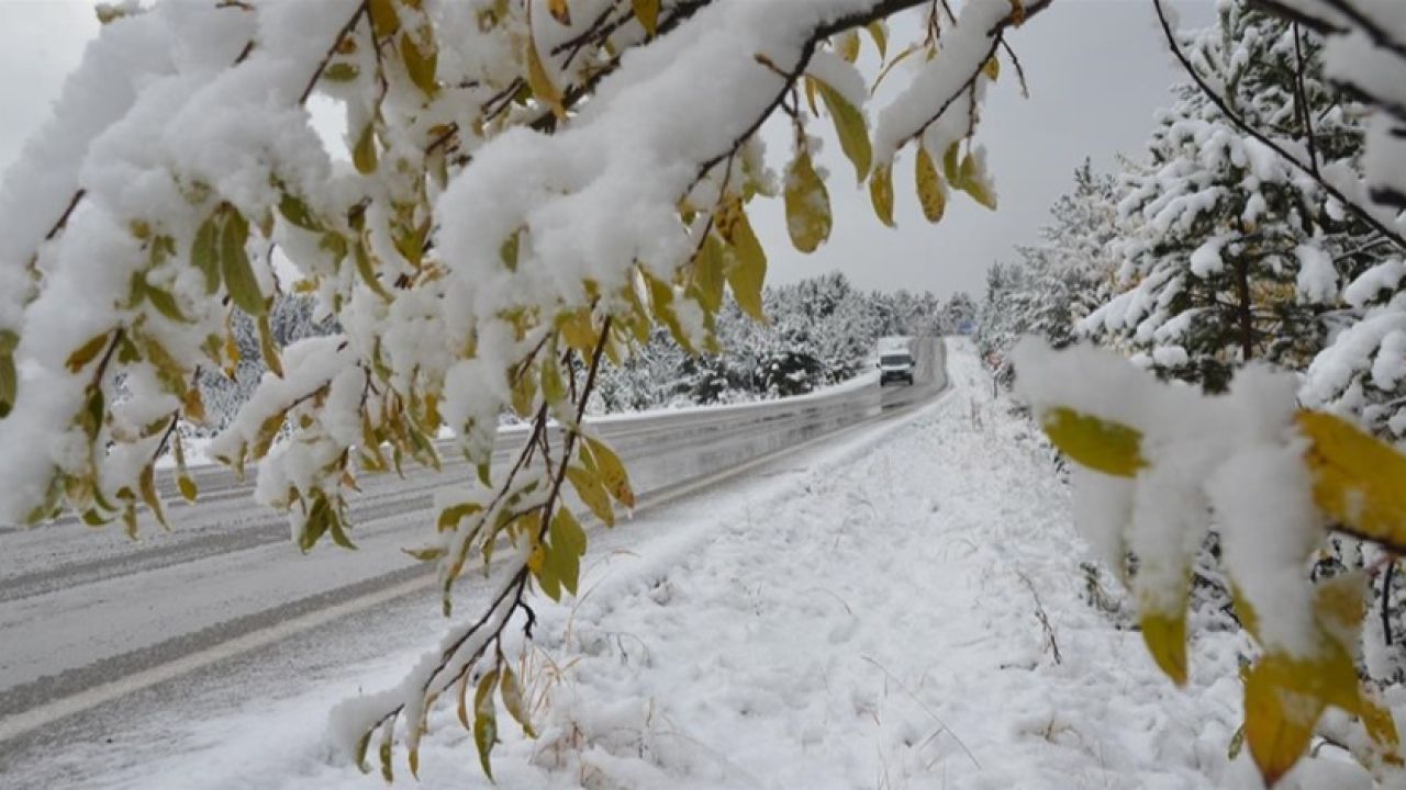 Yörede sonbaharın sarı ve kırmızı renklerine bürünen ağaçlarda kar yağışı ile güzel görüntüler oluştu.