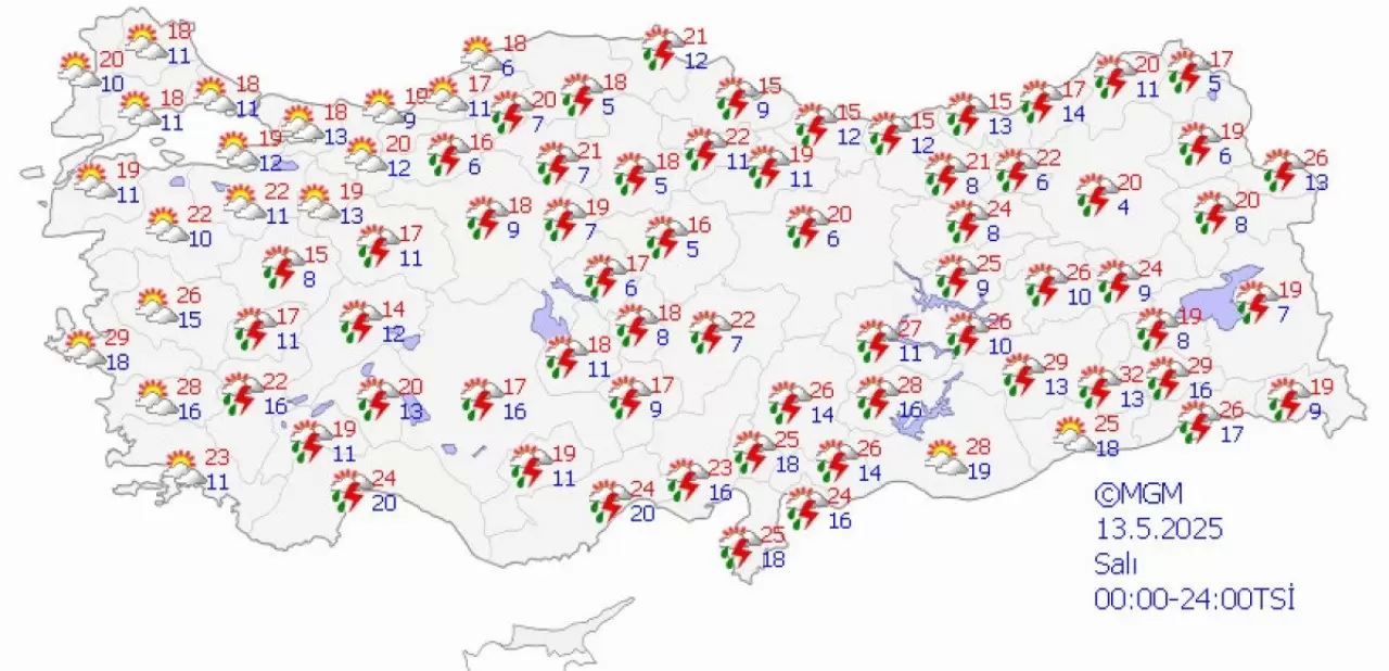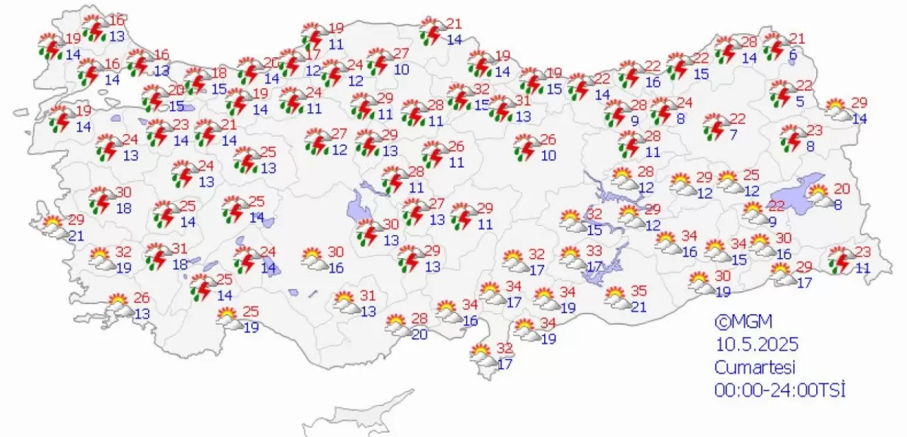 Meteoroloji Genel Müdürlüğü'nün resmi sitesinde yayımlanan 5 günlük hava durumu tahminlerine göre, Türkiye genelinde 10-14 Mayıs 2025 tarihleri arasında hava koşullarında çeşitlilik yaşanacak.