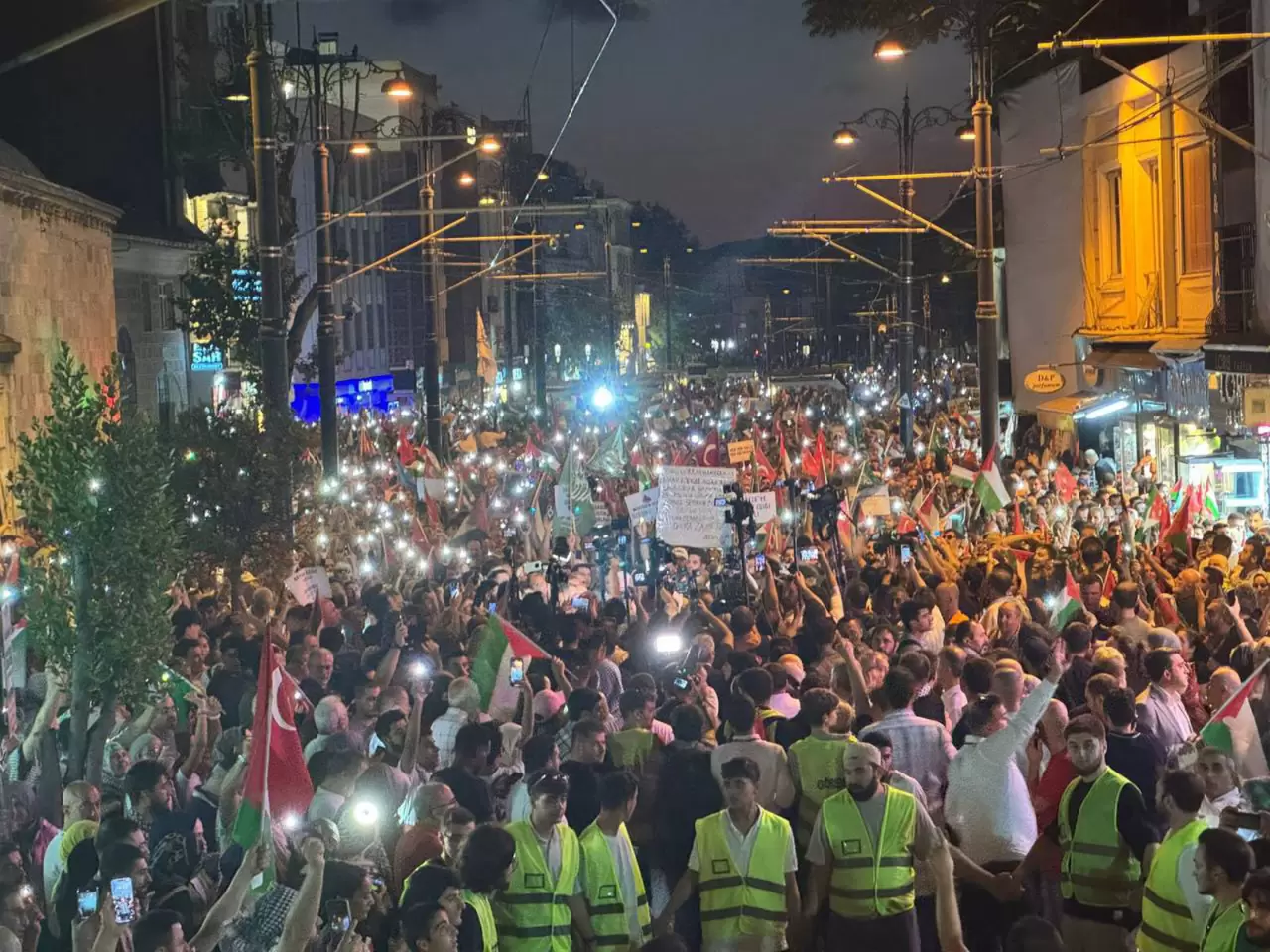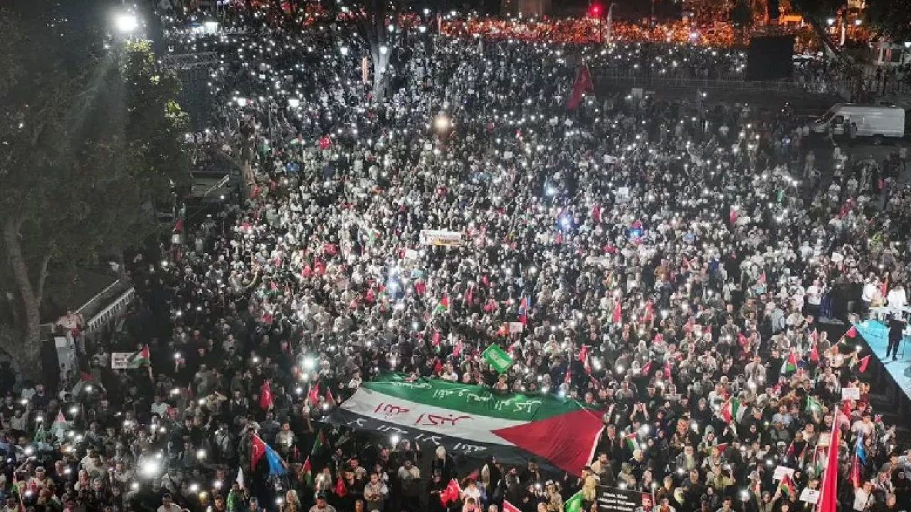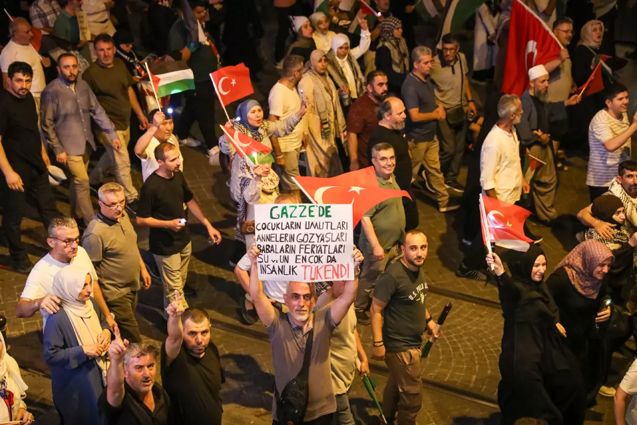İsrail’in Gazze’ye yönelik katliamlarını ve soykırımını protesto etmek amacıyla akşam namazının ardından Beyazıt Camiî önünden Ayasofya-i Kebir Camiî Şerifi önüne kadar yüz binlerce kişinin katılımıyla yürüyüş düzenlendi.