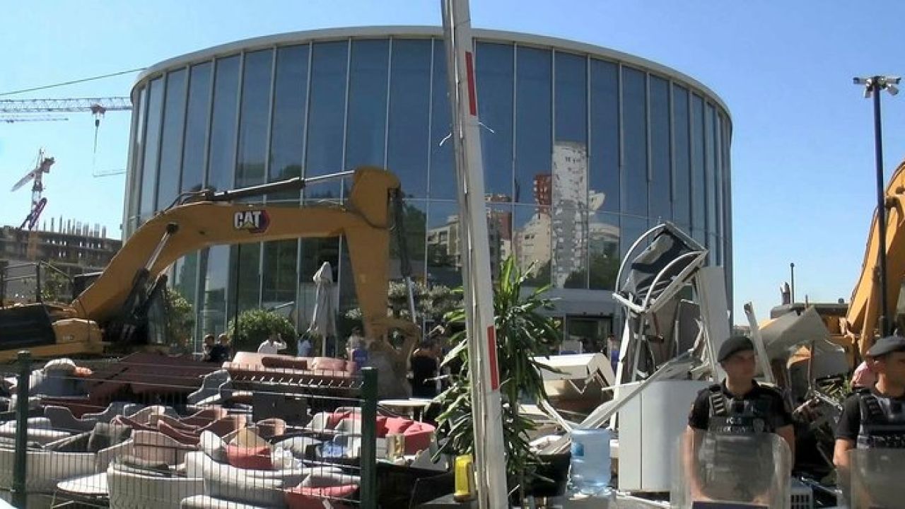 Bu sırada, yıkımın usulsüz olduğunu öne süren firma yetkilileri ile zabıta ekipleri arasında gerginlik yaşandı.