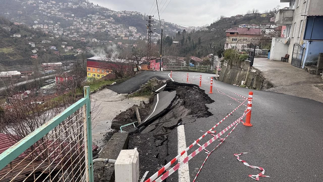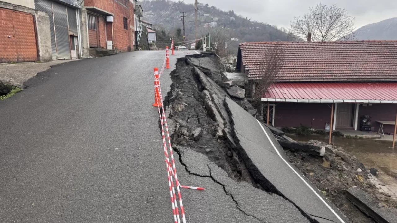 Taşbaca Mahallesi Meşe Caddesi'ndeki yolda, günlerdir etkili olan yağmur ve karın erimesiyle heyelan meydana geldi.
