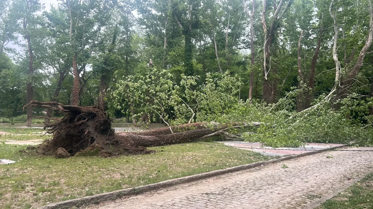Ağaçların devrildiğini görenlerin ilgili birimlere ihbarda bulunması üzerine ağaçların çevresine güvenlik şeridi çekildi.