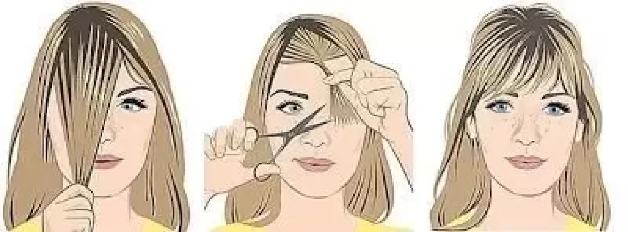 Öncelikle saçınızı güzelce tarayın. Alnınızın üzerinden başlayarak ön kısımda bir çizgi oluşturacak şekilde saçınızı tarak yardımıyla eşit olarak ayırın. Ayırdığınız bu ön tutamı elinizle yukarı doğru döndürün. Döndürdüğünüz saçın uçlarından dikkatlice kesmeye başlayın. İstediğiniz uzunluğa gelene kadar azar azar kesim yapabilirsiniz. Kahküllerinizi şekillendirmeden önce fön suyu ya da normal su ile hafifçe nemlendirmeniz işinizi kolaylaştıracaktır.