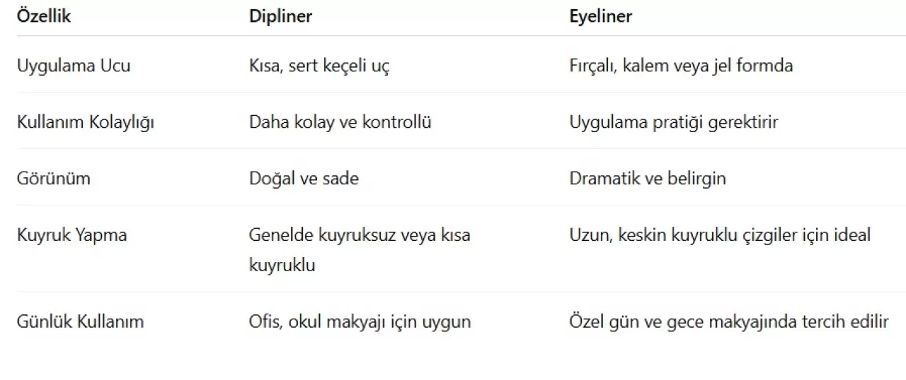 Göz makyajında belirgin bakışlar elde etmek için kullanılan en popüler ürünler arasında dipliner ve eyeliner yer alır. Her iki ürün de göz şekline derinlik kazandırmak, bakışlara anlam katmak için ideal olsa da; uygulama şekilleri, görünümleri ve kullanım kolaylıkları açısından bazı önemli farklara sahiptir. Peki, dipliner ve eyeliner arasındaki farklar nelerdir? Hangi ürün kimler için daha uygundur? İşte merak edilen tüm detaylar...